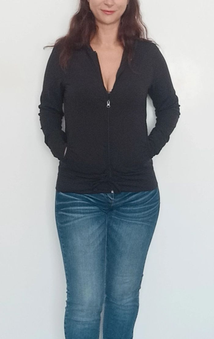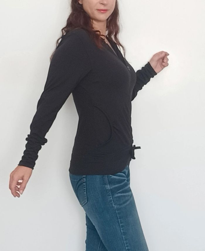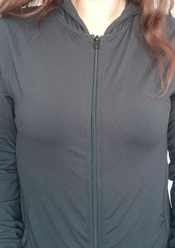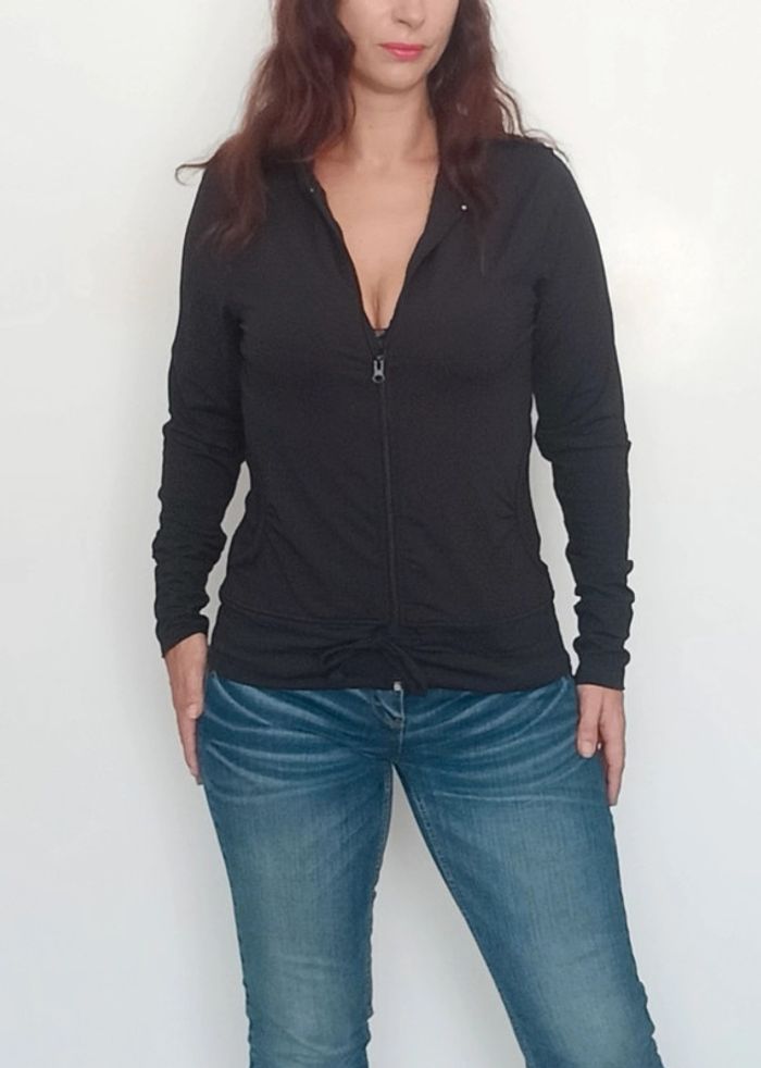 Veste de sport à capuche, fine et confortable, cordons au cou et a la taille, uni noir, pour le running ou le sport au collège/lycée #vestesport36 #giletsport36 #vestecapuche36 #tenuesport36 #hautsport36 #vestefine36