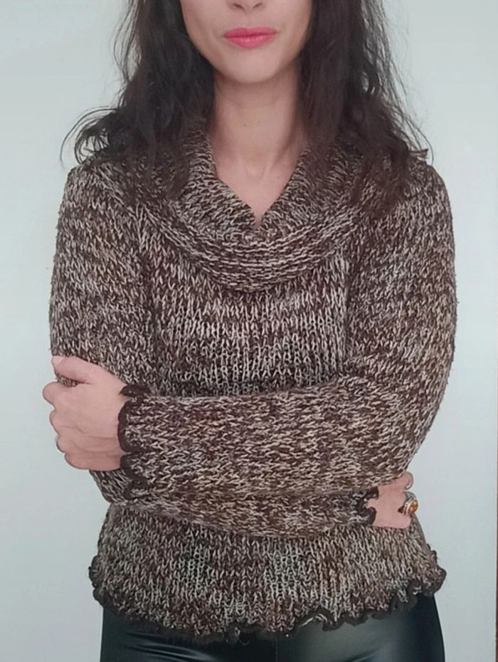 Regardez mes autres articles dans votre taille pour grouper les fdp a #poupoupidou36 et #poupoupidou34 Pull chaud avec col roulé bénitier, grosses mailles mélangées tons marrons et crème, froufrou aux poignets, style ethnique, confortable et facile a assortir,taille 34/36 #pull3436 #pullchaud3436 #pull34 #pull36 #pullethnique34 #pullethnique36 #pulcolroule34 #pullchaud34 #pullchaud36 #pullmarron3436 #pullchine3436