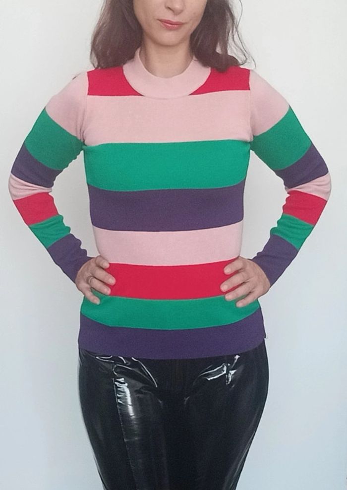 📣 regardez mes autres articles dans votre taille à #poupoupidoutu pour économiser sur les frais de ports et bénéficier d'une réduction 😊🌸 -10% pour deux articles achetés -20% pour trois et + Faites moi l'offre ( pas encore automatique) 🫶🫶🫶🫶🫶🫶🫶 Pull moulant et extensible, multicolore rayé, col rond, chaud, confortable et facile a assortir, majorité viscose matière de qualité, + elastanne #pull #pullmoulant #pullraye #pullchaud #pullmulticolore #pullsympa #pullhiver #pullcasual #pullretro
