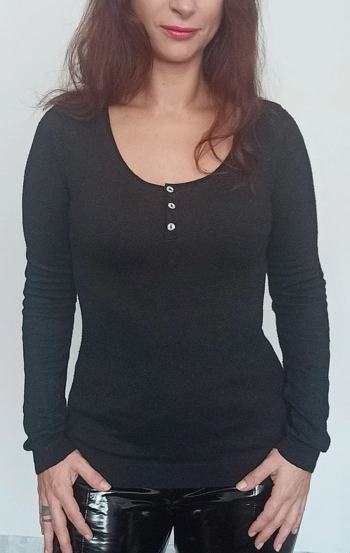 📣 regardez mes autres articles dans votre taille à #poupoupidou36 pour économiser sur les frais de ports et bénéficier d'une réduction 😊🌸 -10% pour deux articles achetés -20% pour trois et + Faites moi l'offre ( pas encore automatique) 🫶🫶🫶🫶🫶🫶🫶 Pull fin moulant uni noir, avec décolleté arrondi et 3 boutons au buste, confortable, facile a assortir, basic camaïeu, taille 1 (34/36/38) #pullnoir #pullnoir36 #pullbasique #pullbasique36 #pull36 #pullmoulant #pullfeminin #pullfin36 #pullfin38 #pullfin34