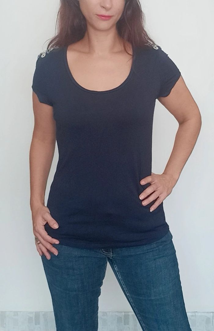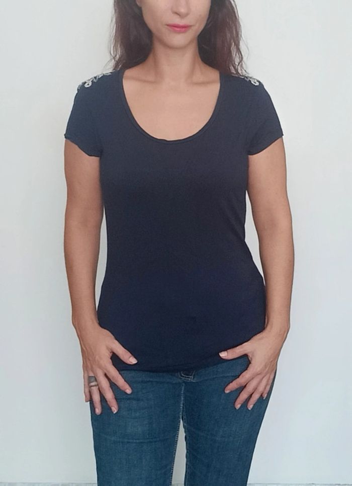 📣 regardez mes autres articles dans votre taille à #poupoupidou40 pour économiser sur les frais de ports et bénéficier d'une réduction 😊🌸 -10% pour deux articles achetés -20% pour trois et + Faites moi l'offre ( pas encore automatique) 🫶🫶🫶🫶🫶🫶🫶 T-shirt uni marine avec fleurs en perles sur les épaules, facile a porter et a assortir, confortable et féminin, chic #tshirt40 #hautmarine40 #tshirtmarine40 #hautchic40 #hautperles40 #hautcamaieu40