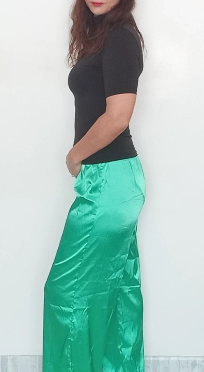 Pantalon chic en satin vert taille 38 - photo numéro 6
