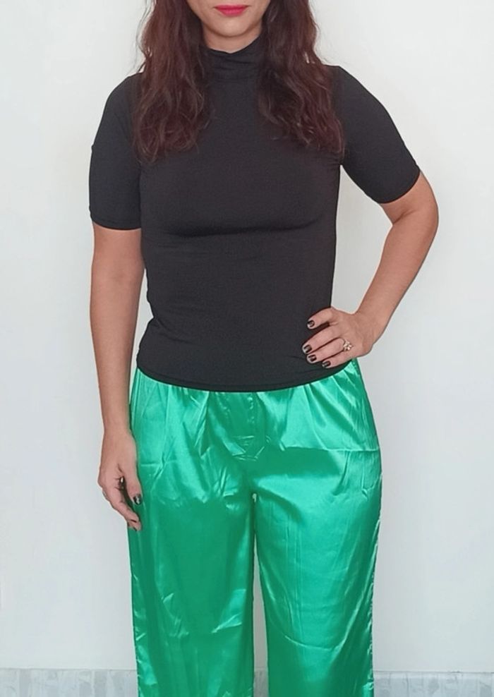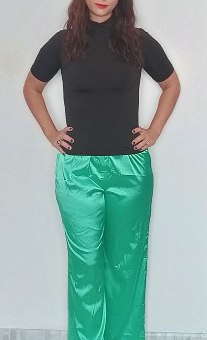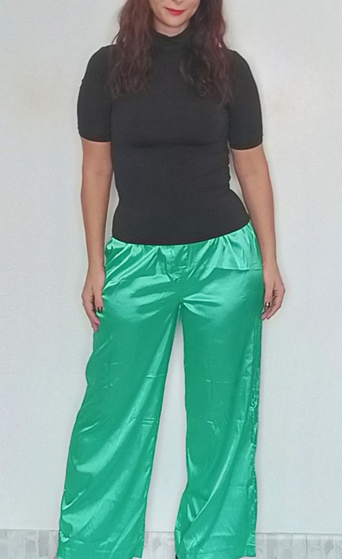 Pantalon chic en satin vert taille 38 - photo numéro 1