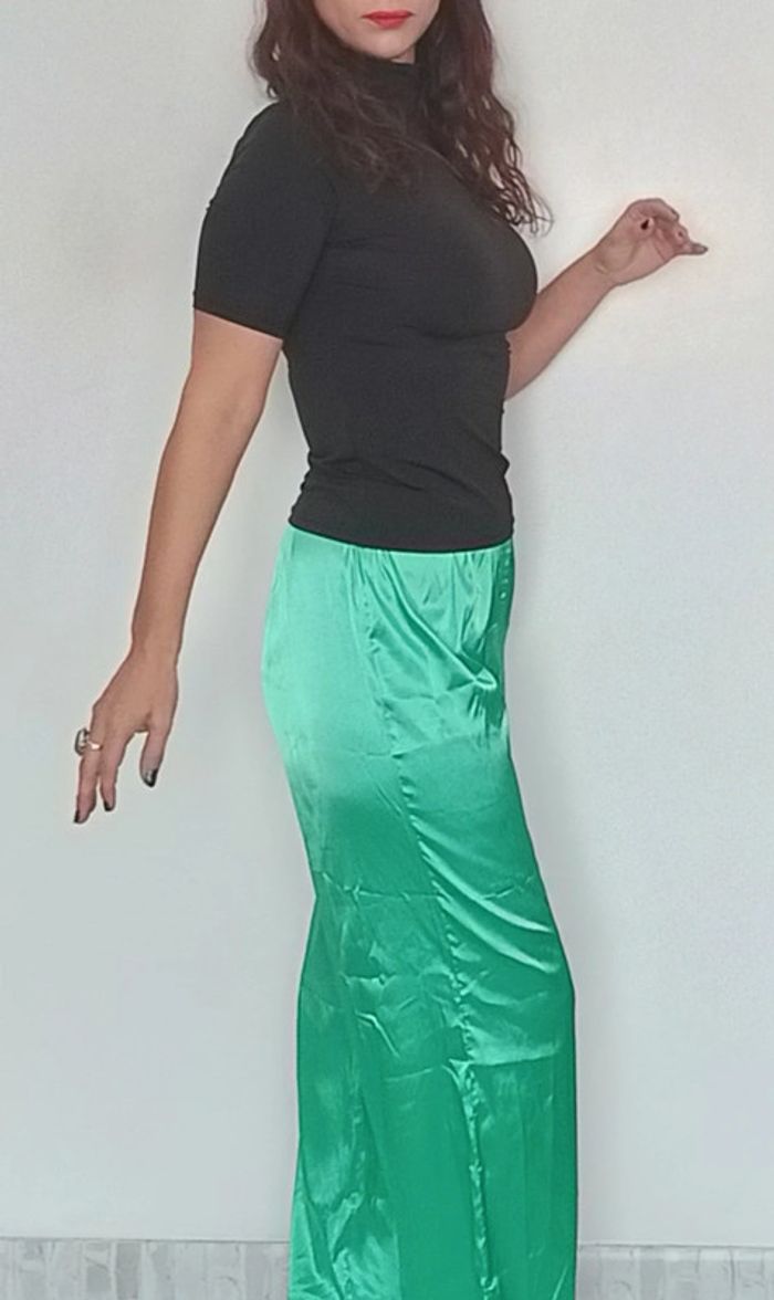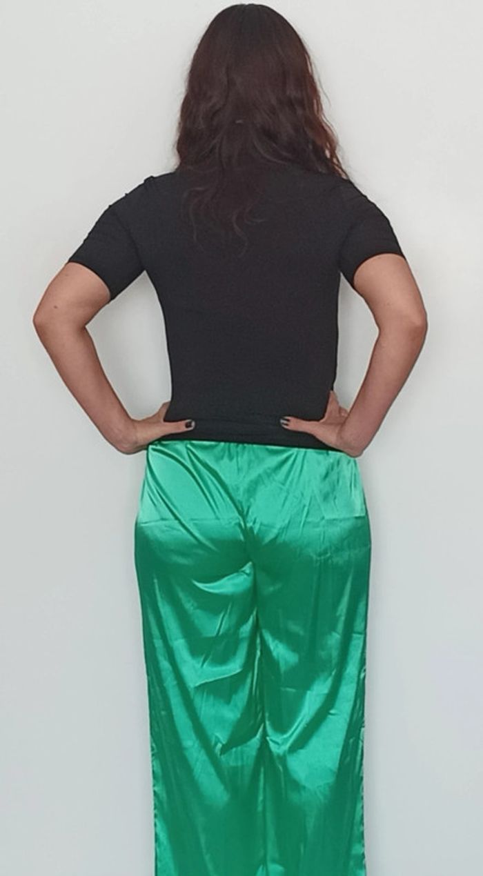 Pantalon chic en satin vert taille 38 - photo numéro 2