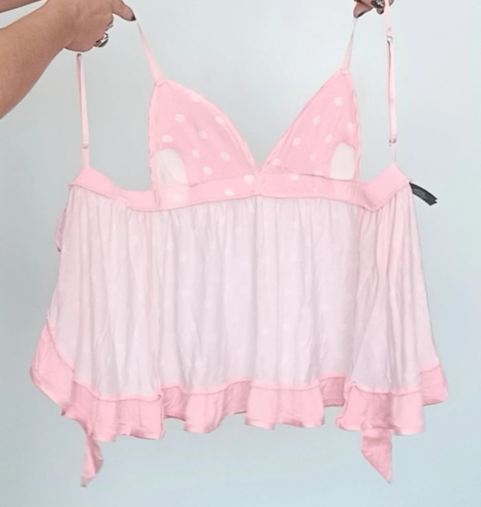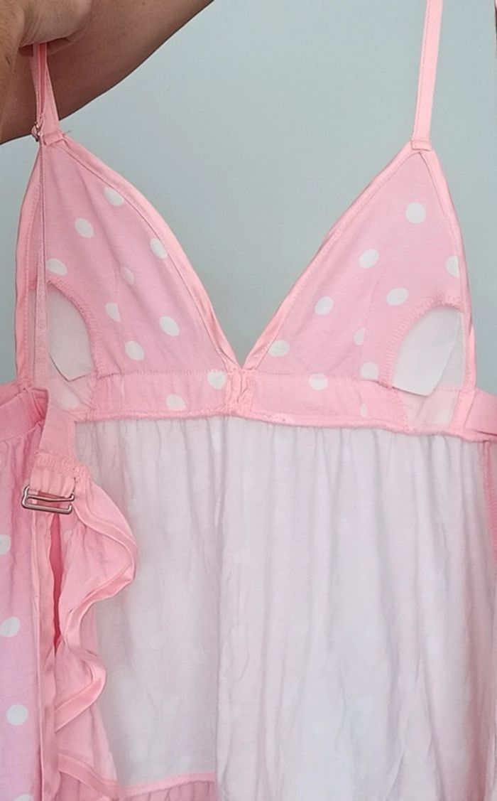 📣 regardez mes autres articles dans votre taille à #poupoupidou36 pour économiser sur les frais de ports et bénéficier d'une réduction 😊🌸 -10% pour deux articles achetés -20% pour trois et + Faites moi l'offre ( pas encore automatique) 🫶🫶🫶🫶🫶🫶🫶 Caraco rose à pois blanc style babydoll, dos nu à nouer, décolleté pigeonnant, léger pads intégrés pour ne pas être obligée de mettre un soutien gorge, mimi et sexy #undiz36 #caraco36 #caracobabydoll #cacacoapois #caracodosnu