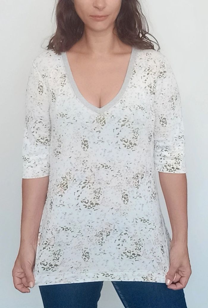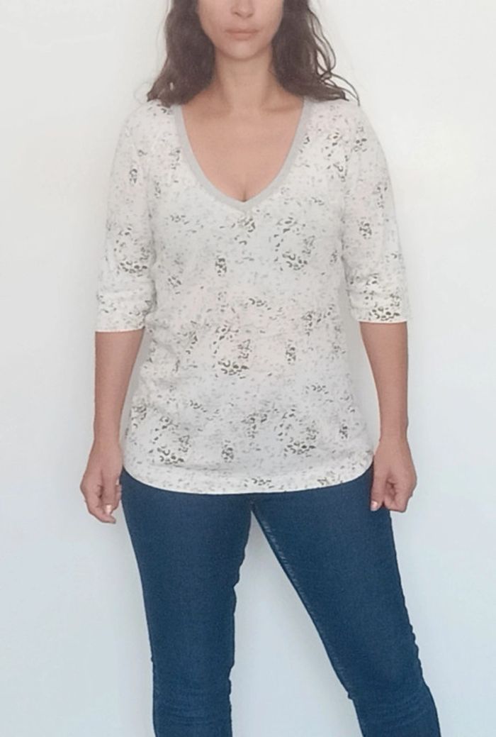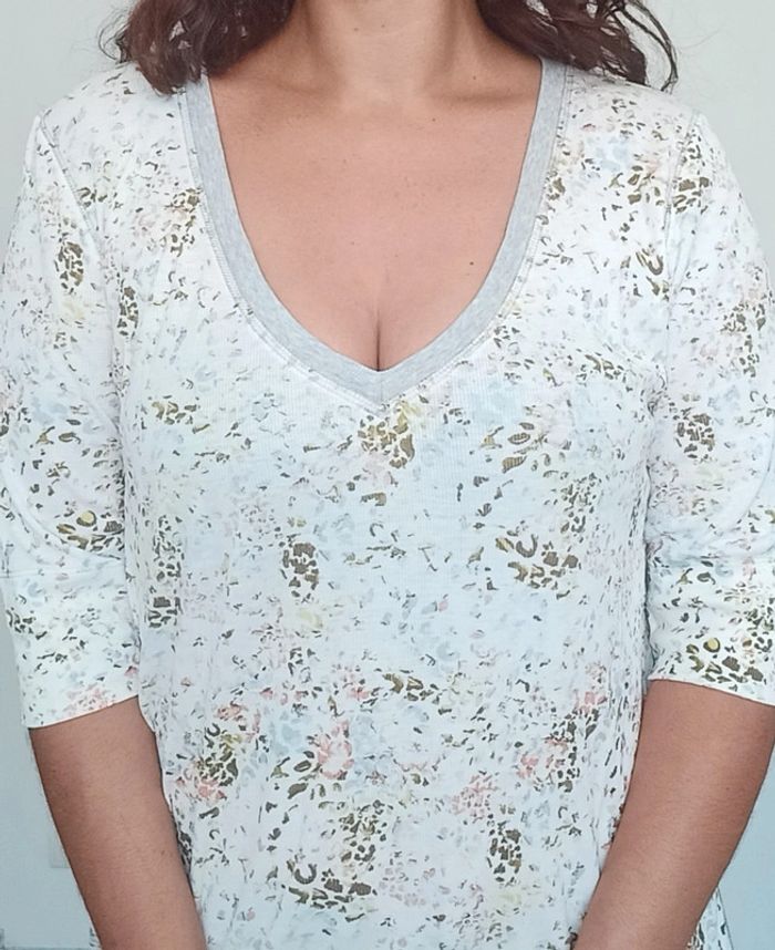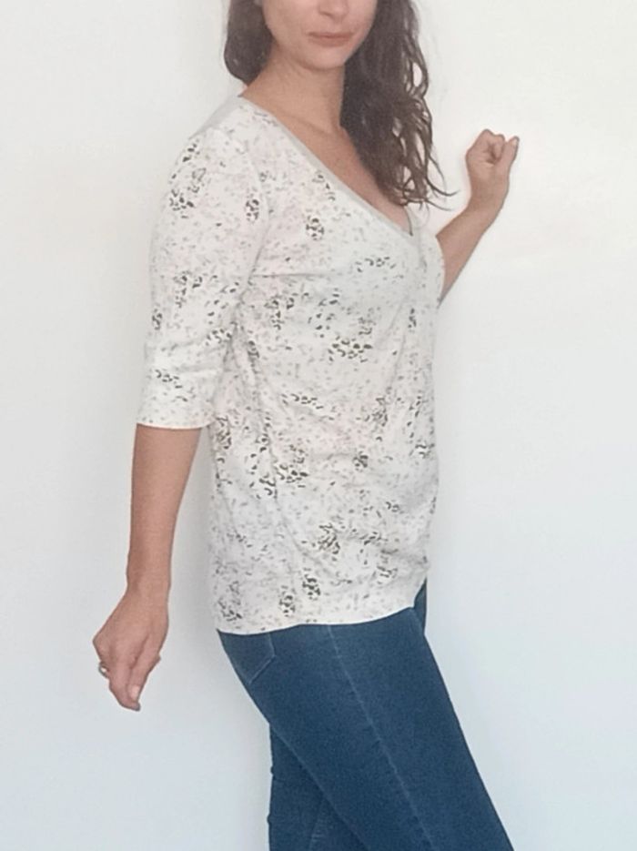 Joli haut manches trois quarts, décolleté en V, style casual romantique, confortable et facile a assortir, idéal rentrée #hautcasual40 #hautromantique40 #hautdecollete40 #hautmanchestroisquarts #hautrentree40 #haut40 #blouse40
