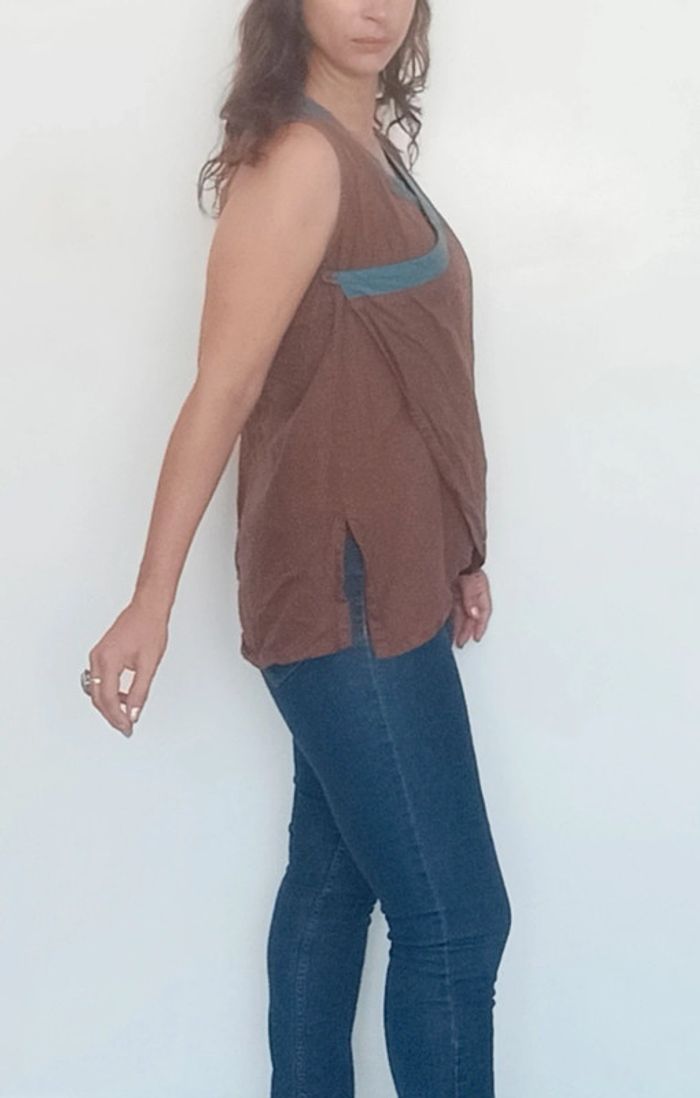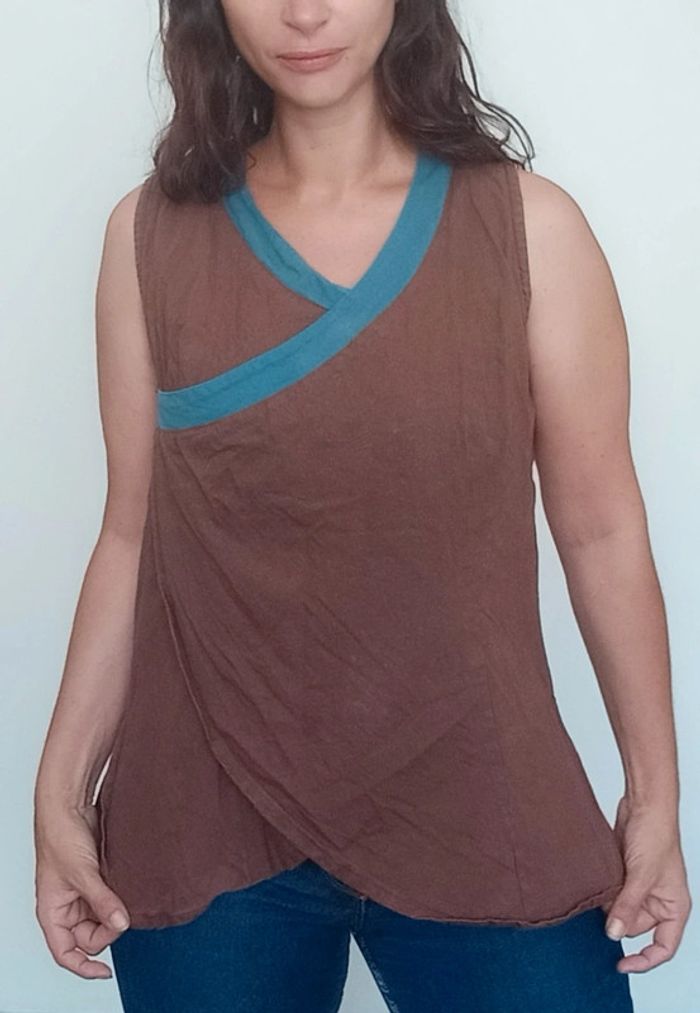 📣 Pour un lot, me contacter 😊🌸 -10% pour deux articles achetés -20% pour trois et + 🥰 #poupoupidou40 🫶🫶🫶🫶🫶🫶🫶 Haut sans manche, long, forme coeur croisé, marron et bleu style ethnique et matière lin confortable #hautcoline40 #hautethnique40 #hautete40 #hautcasual40
