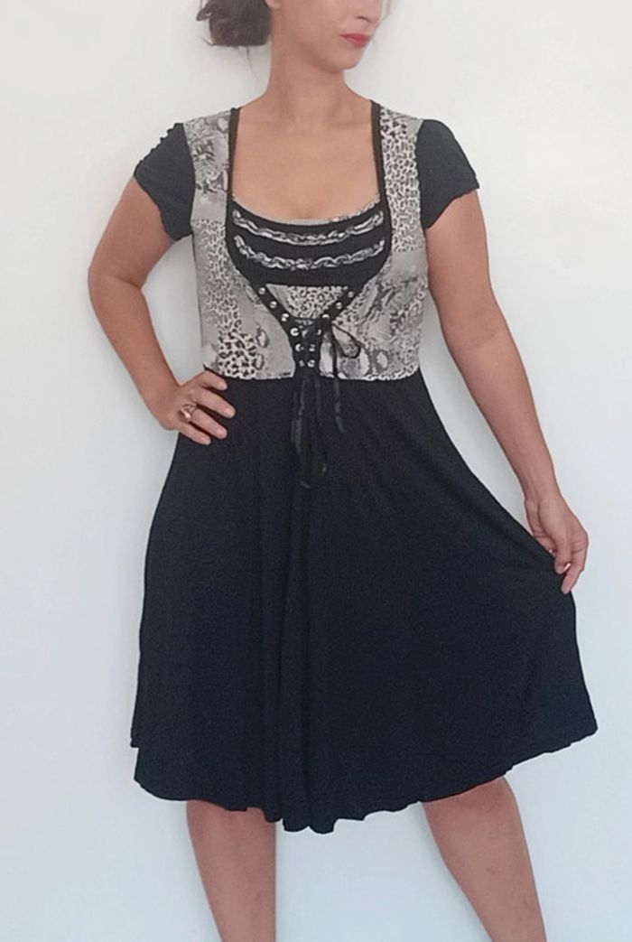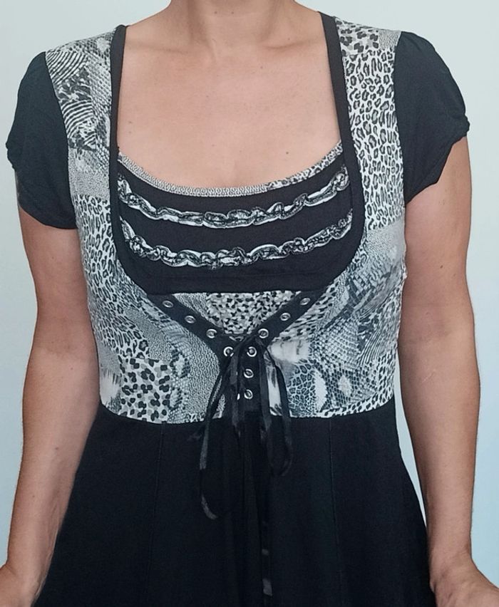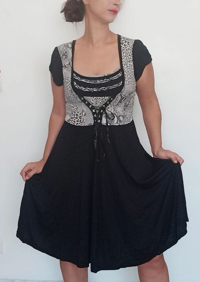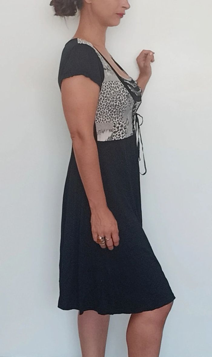 📣 regardez mes autres articles dans votre taille à #poupoupidouxl et #poupoupidou44 pour économiser sur les frais de ports 🫶🫶🫶🫶🫶🫶🫶 Jolie robe, manches courtes, buste motif léopard avec lacets pour un effet corset, extensible, jupe fluide mi longue évasée unie noire, confortable et féminine, style sexychic, taille 42/44 #robe4244 #robelacée44 #robesexychic4244 #robesexychic42 #robesexychic44 #robemilongue4244 #robecasualchic4244 #robefeminine4244 #robeléopard4244 #robecorset42 #robelacets