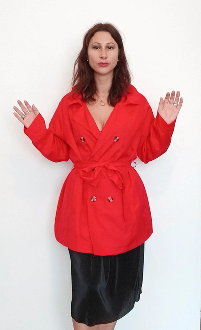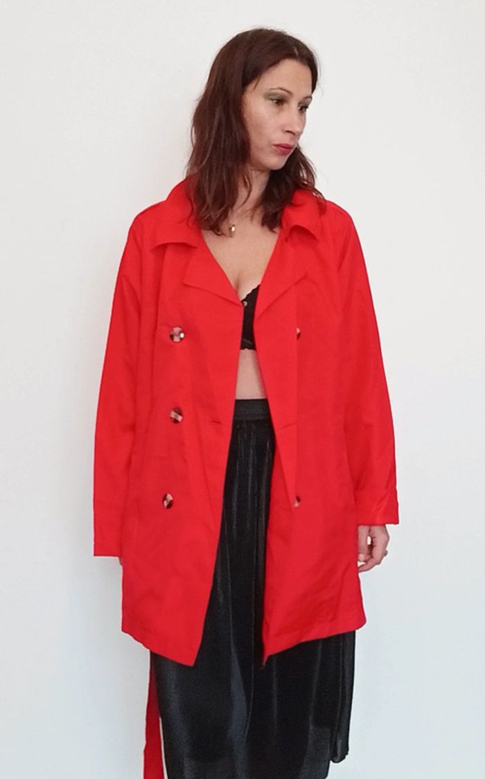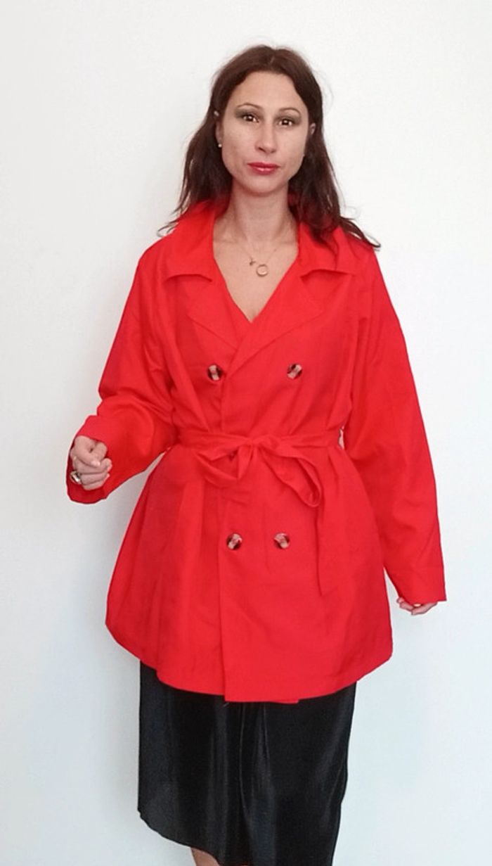 Veste style imperméable trois quart ou trench court, matière fine, rouge vif neuve taille 46/48, peut aussi convenir aux tailles inférieures grace a la ceinture qui la cintre #vesterouge46 #vestepinup #vesterouge4648 #vesterougeneuve #vestechic46 #vestetroisquart #pinup46 #pinup4648 #pinup44 #poupoupidou46