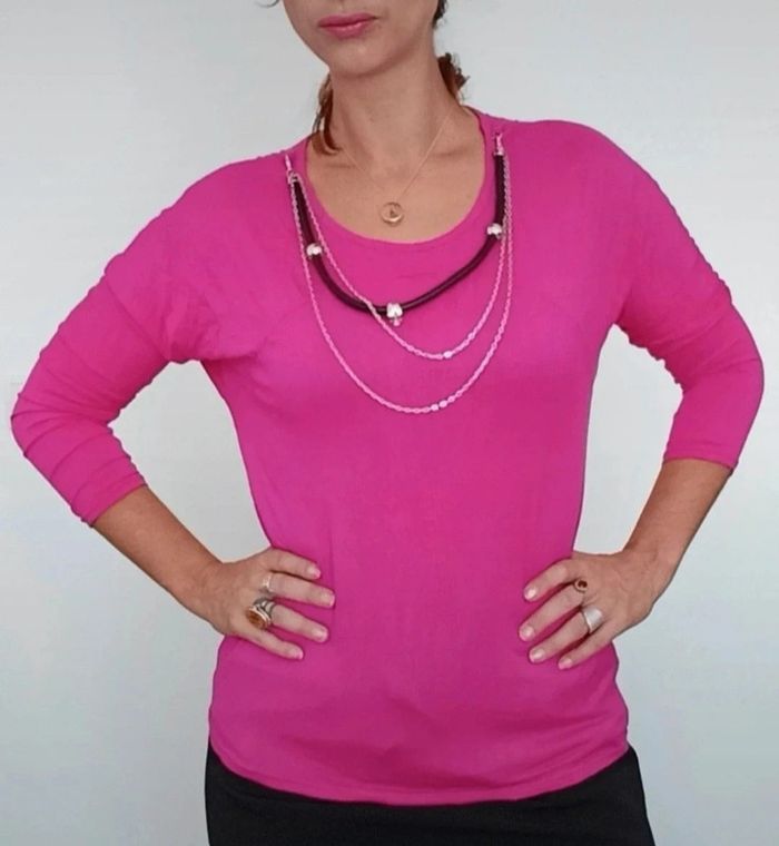 Regardez mes autres articles dans cette taille pour grouper les fdp #poupoupidouxl Haut manches trois quarts unie rose vif avec collier intégré, chaînes et breloques têtes de mort, fabriqué en France #hautrosexl #hautrose42 #hautavecchaine #hautchaine #hauttetedemort #hautbijoux #hautgothique #hautgoth #tetedemort