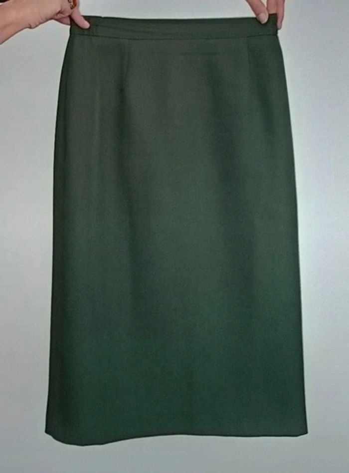 Jupe tailleur vintage chic vert kaki taille 38 - photo numéro 2