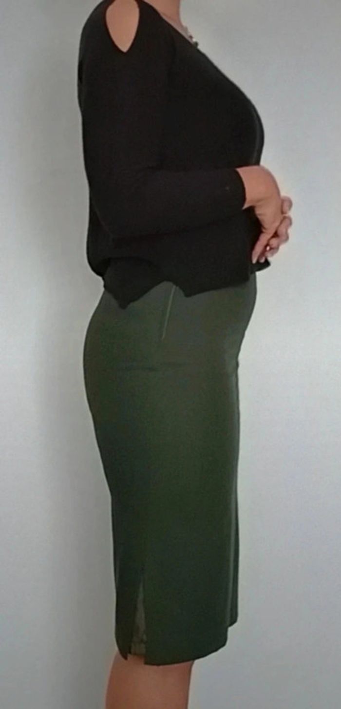 Jupe tailleur vintage chic vert kaki taille 38 - photo numéro 3