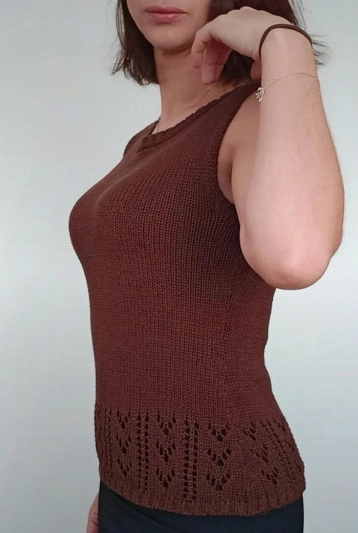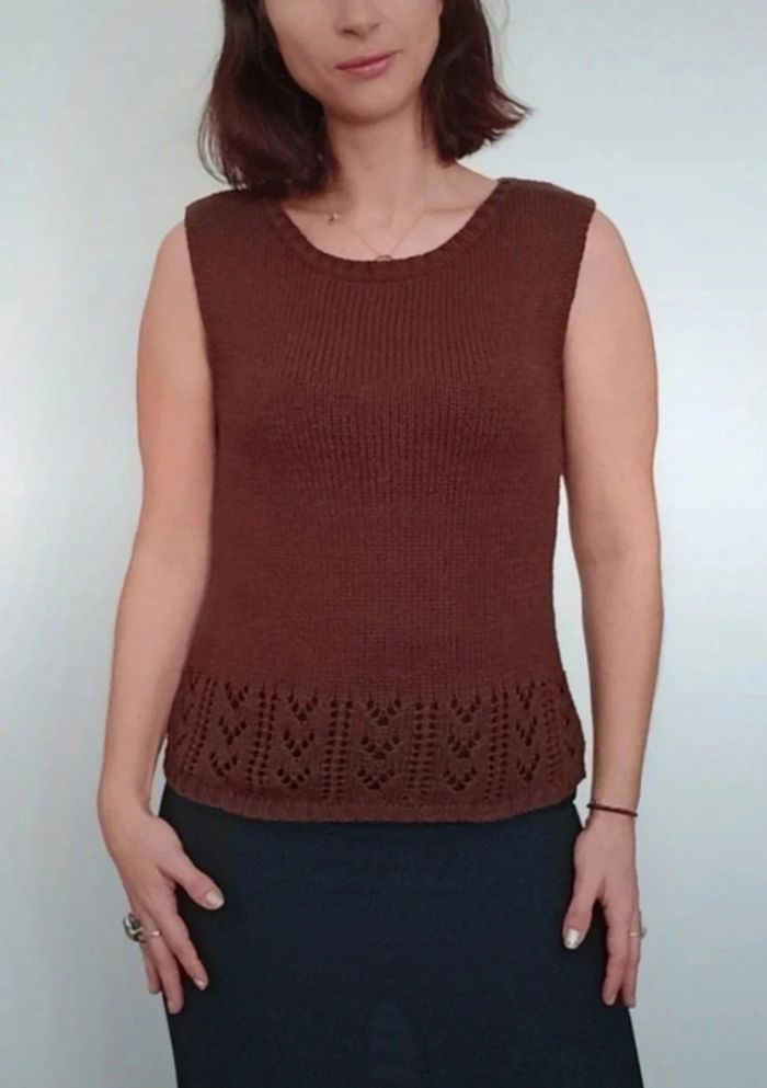 Regardez mes autres articles dans cette taille pour grouper les fdp #poupoupidouxl #poupoupidou44 Pull sans manche uni marron, col rond, ajouré en bas, facile a porter et a assortir, #pullsansmanches #pullsansmanches42 #pullsansmanches4244 #pullmarton