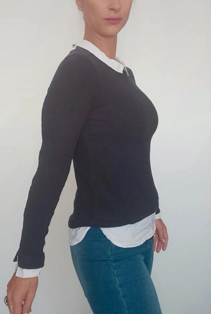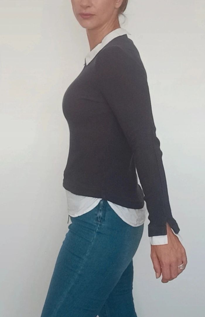 Sweat côtelé chemisier blanc intégré taille 34 - photo numéro 4
