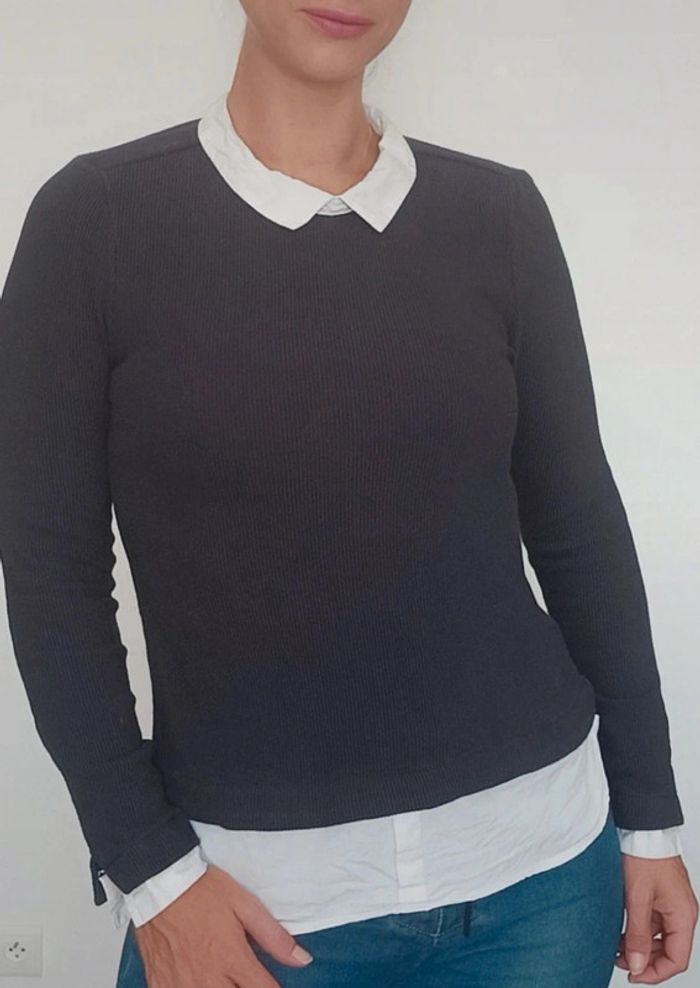 Sweat côtelé chemisier blanc intégré taille 34 - photo numéro 1