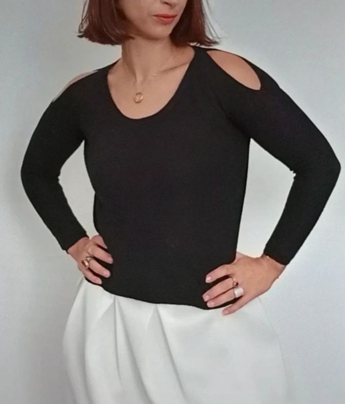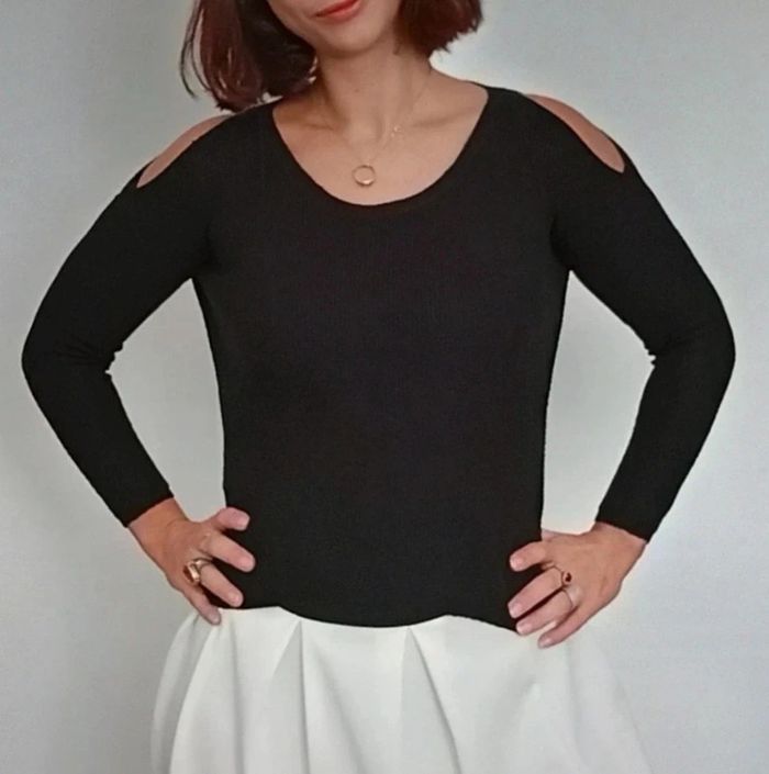 Pull fin uni noir épaules ouvertes taille 34 - photo numéro 1