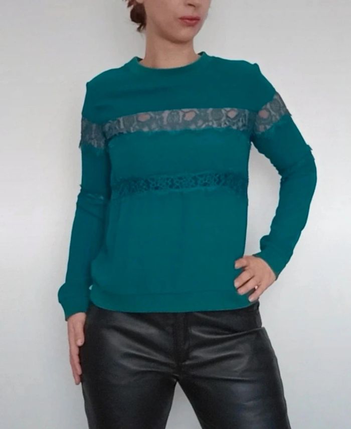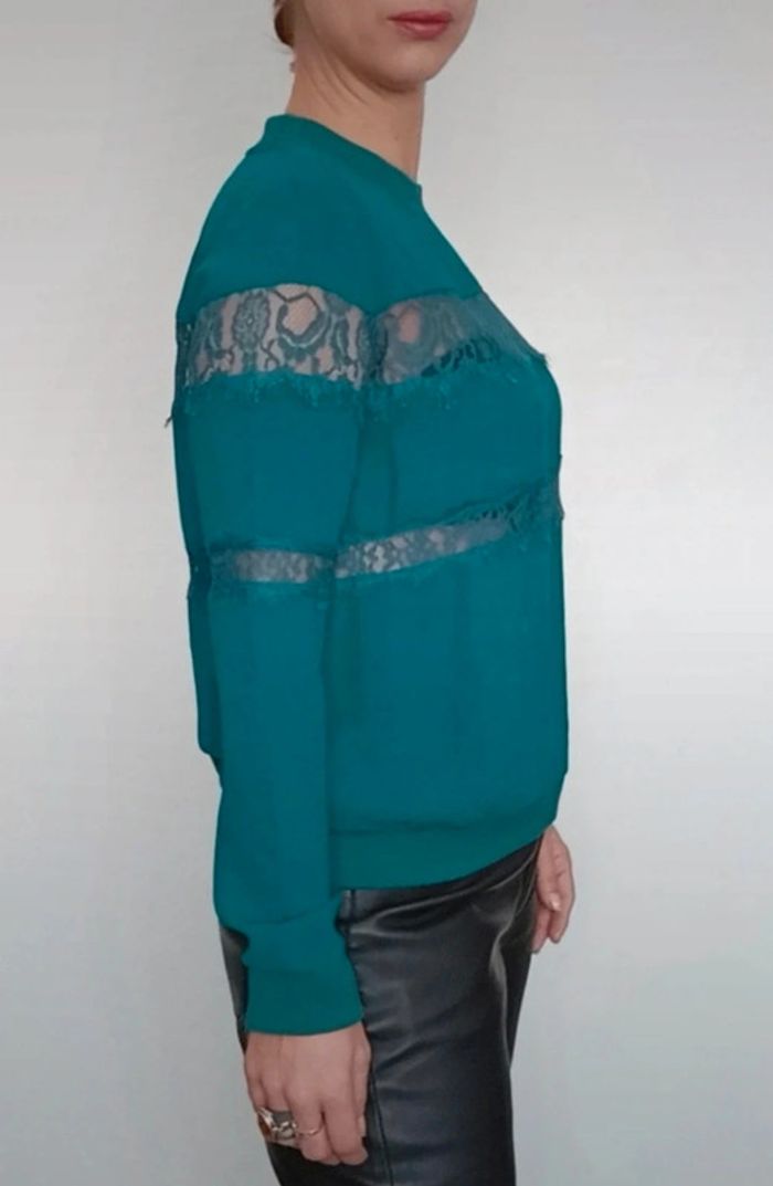 Regardez mes autres articles dans cette taille pour grouper les fdp #poupoupidou38 Sweat Bershka romantique avec bandes dentelle ajourée, chic, uni bleu canard facile a assortir, parfait état #sweatbershka38 #hautbershka38 #bershka38 #sweatdentelle38 #sweatbleucanard #sweatromantique