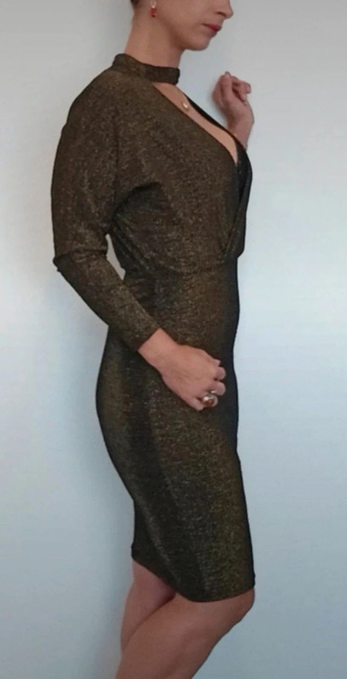 Robe soirée pailletée dorée décolletée sexychic - photo numéro 3