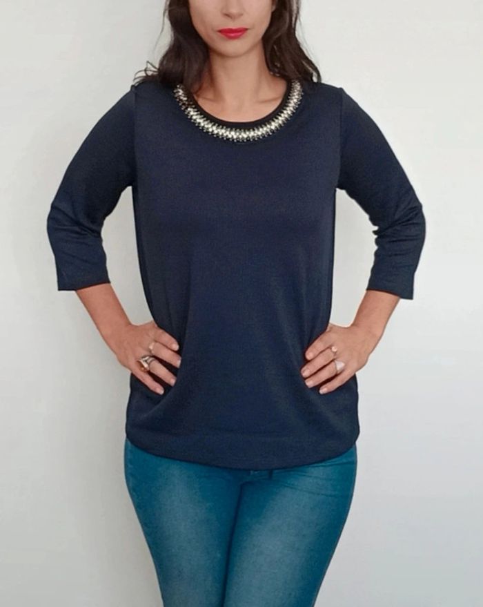 Haut chic marine col clouté et strassé taille 42 - photo numéro 3