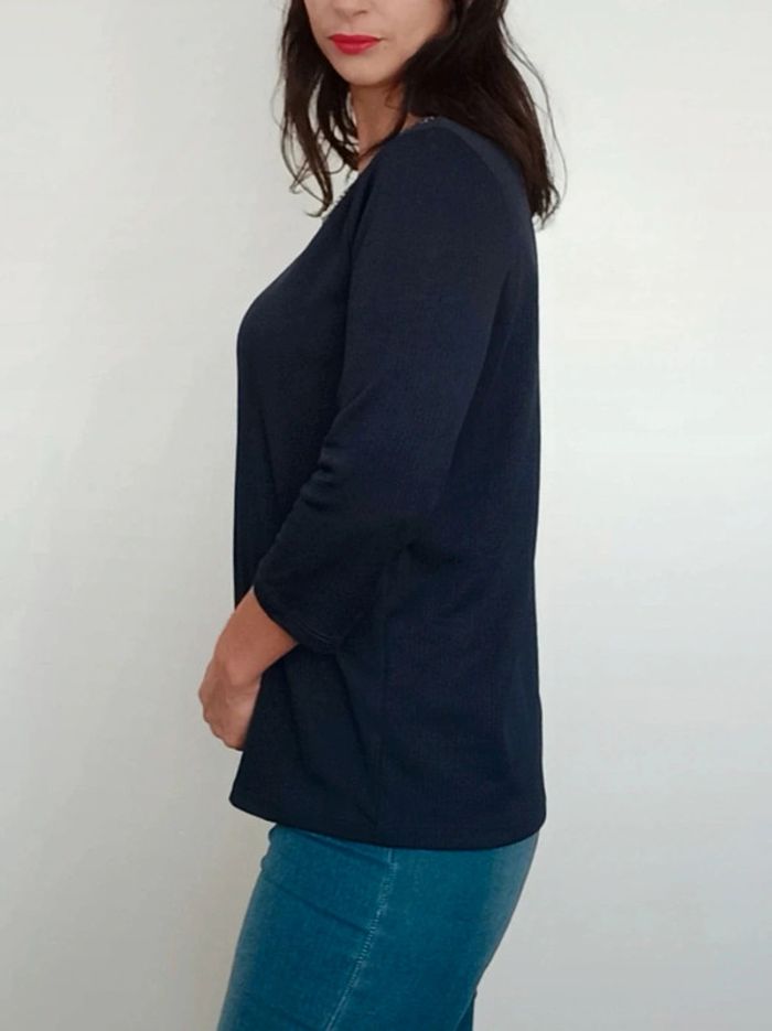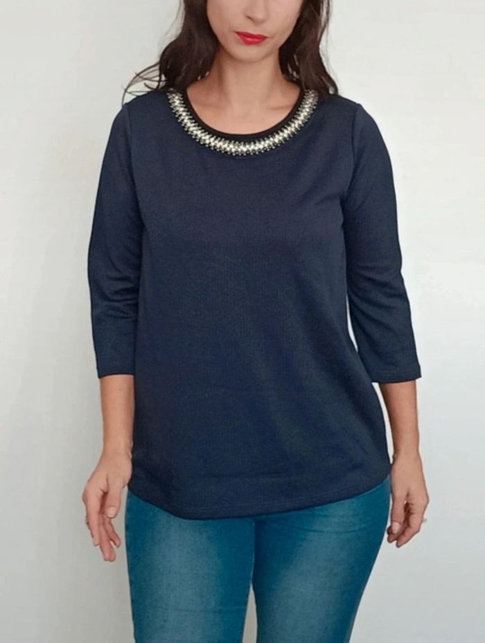 Regardez mes autres articles dans votre taille pour grouper les fdp #poupoupidouxl Haut manches trois quarts, uni marine, chic détail col avec cloutage et strass, facile a porter et a assortir #hautmarine42 #hautchic42 #hautcolstrass #hautcasualchic42 #hautcolcloute #hautxl