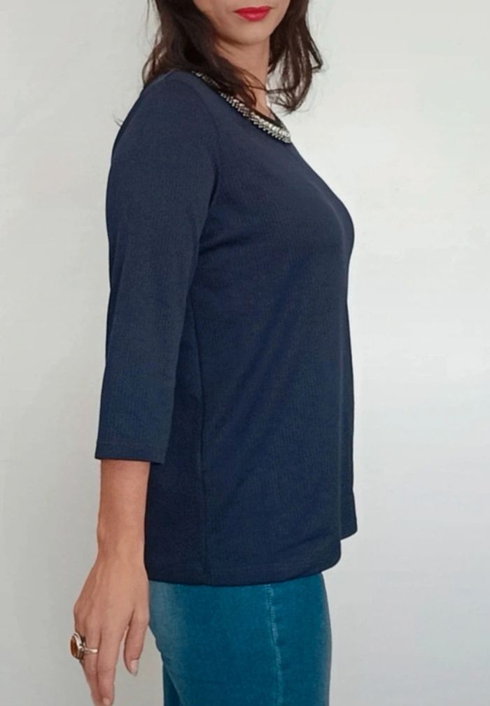Haut chic marine col clouté et strassé taille 42 - photo numéro 2