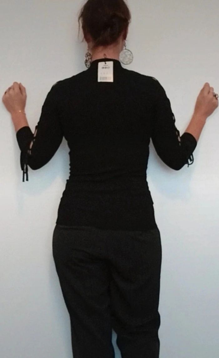 Pull moulant noir manches lacées ajourées 36 - photo numéro 8