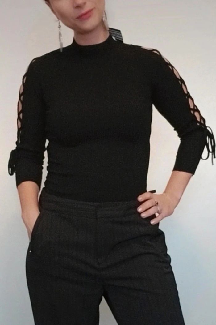 Pull moulant noir manches lacées ajourées 36 - photo numéro 2