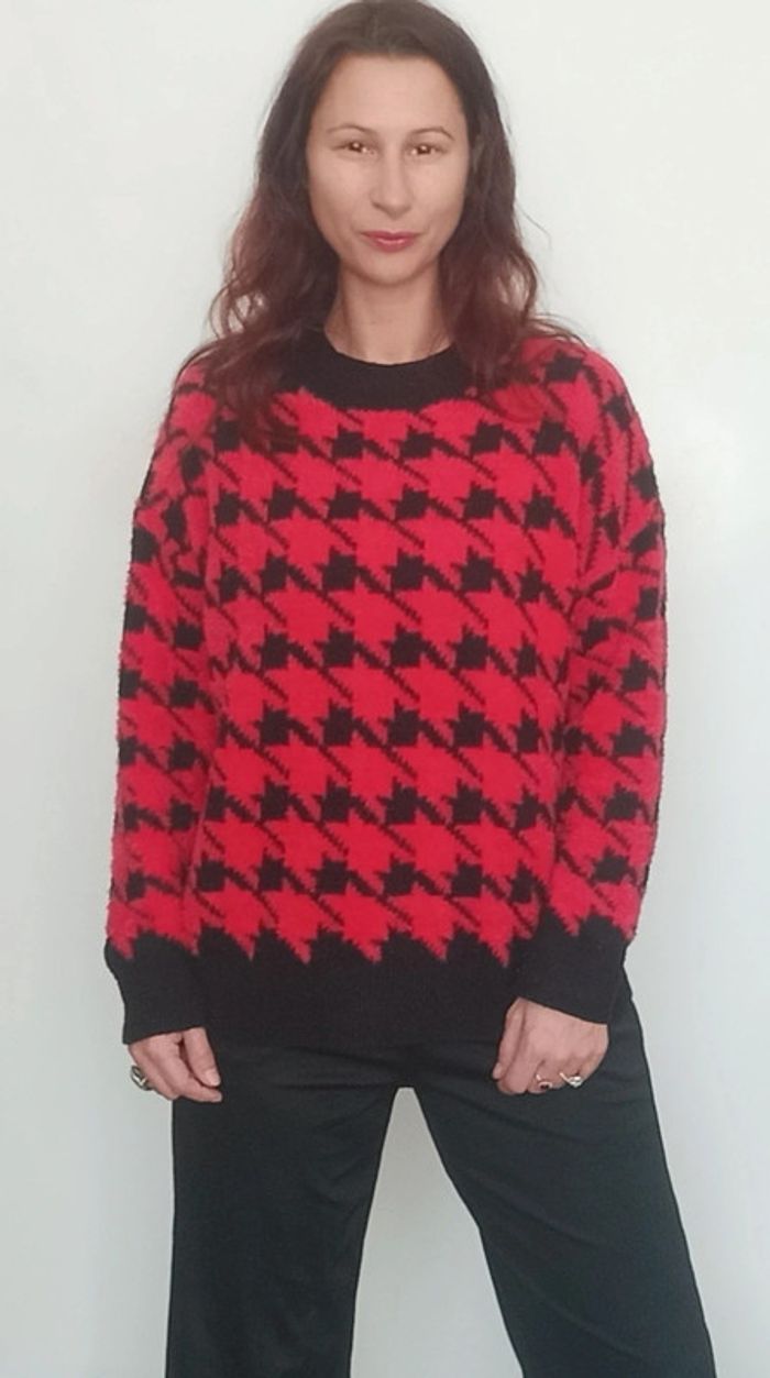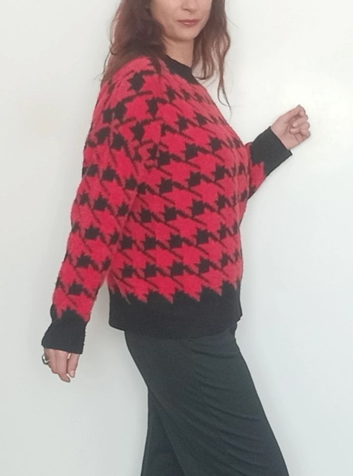 Pull d hiver bien chaud, confortable, fluide, noir et rouge facile a porter et a assortir, chic #pull38 #pulldhiver38 #pullhiver38 #pullchic38 #pullchaud38 #pullfluide38 #pullrougeetnoir38