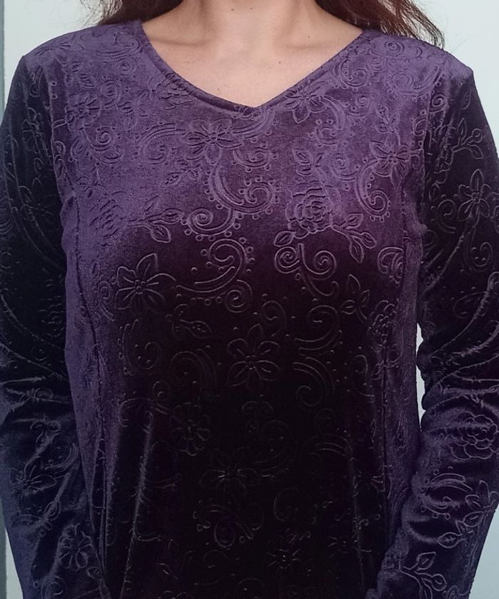 Regardez mes autres articles dans cette taille pour grouper les fdp #poupoupidoutu Robe longue douce en velours violet, motif fleuri ton sur ton effet broderie, chaude, confortable, a cintrer avec une ceinture ou laisser fluide, très confortable et de bonne qualité #robelongue #robehiver #robelonguehiver #robelonguevelours #robevelours #robeveloursviolet #robechic #robesoiree #robedouce