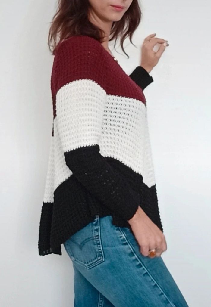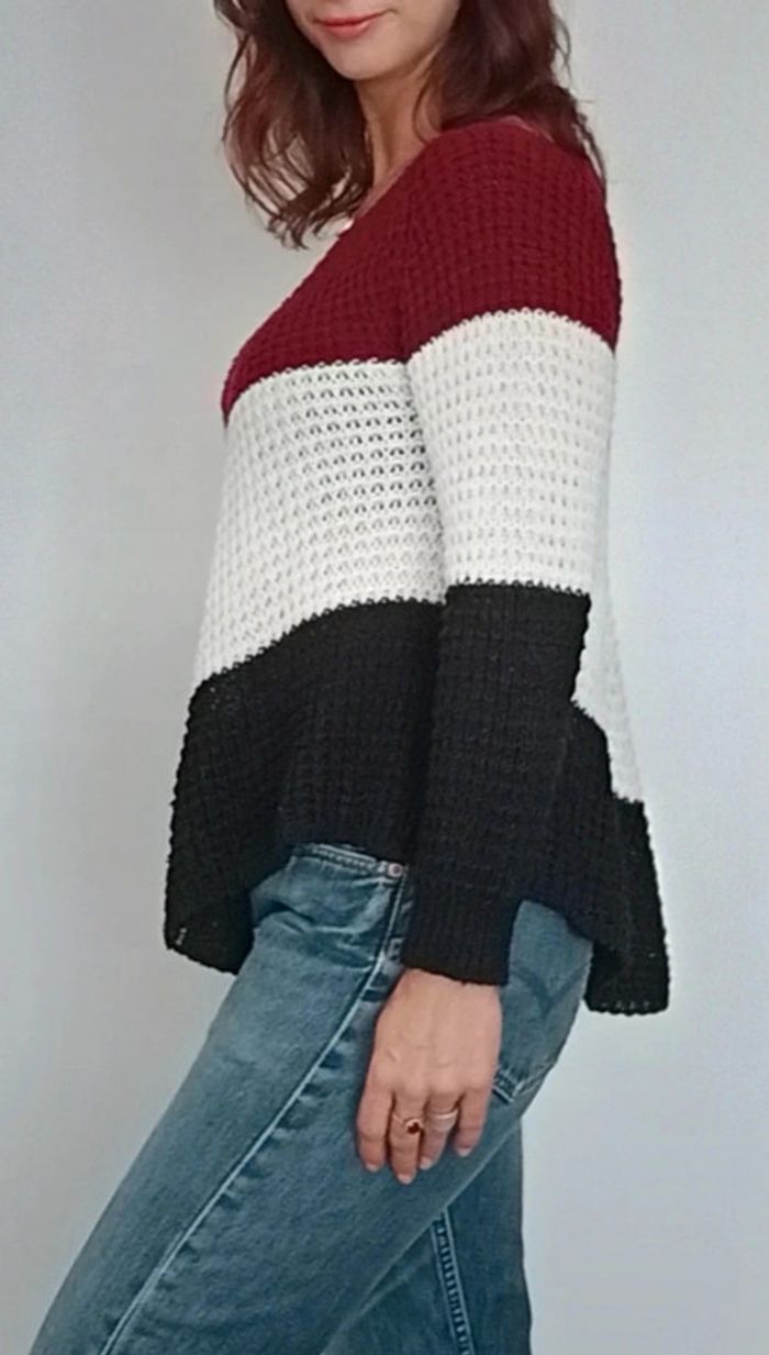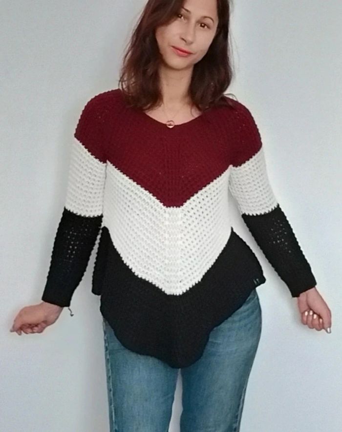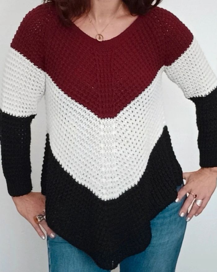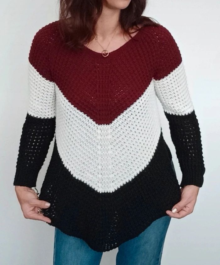 Regardez mes autres articles dans cette taille pour grouper les fdp #poupoupidoutu Pull crochet tricolore, en pointe devant, casual facile a porter et a assortir #pullasymetrique #pullenpointe #pullcrochet #pulltricolore #pullcasual #pullhiver #pulltendance