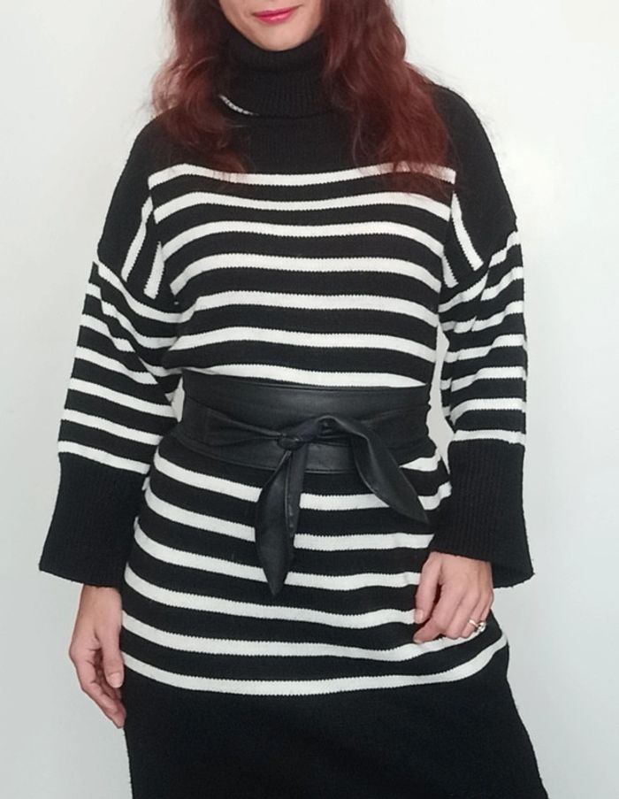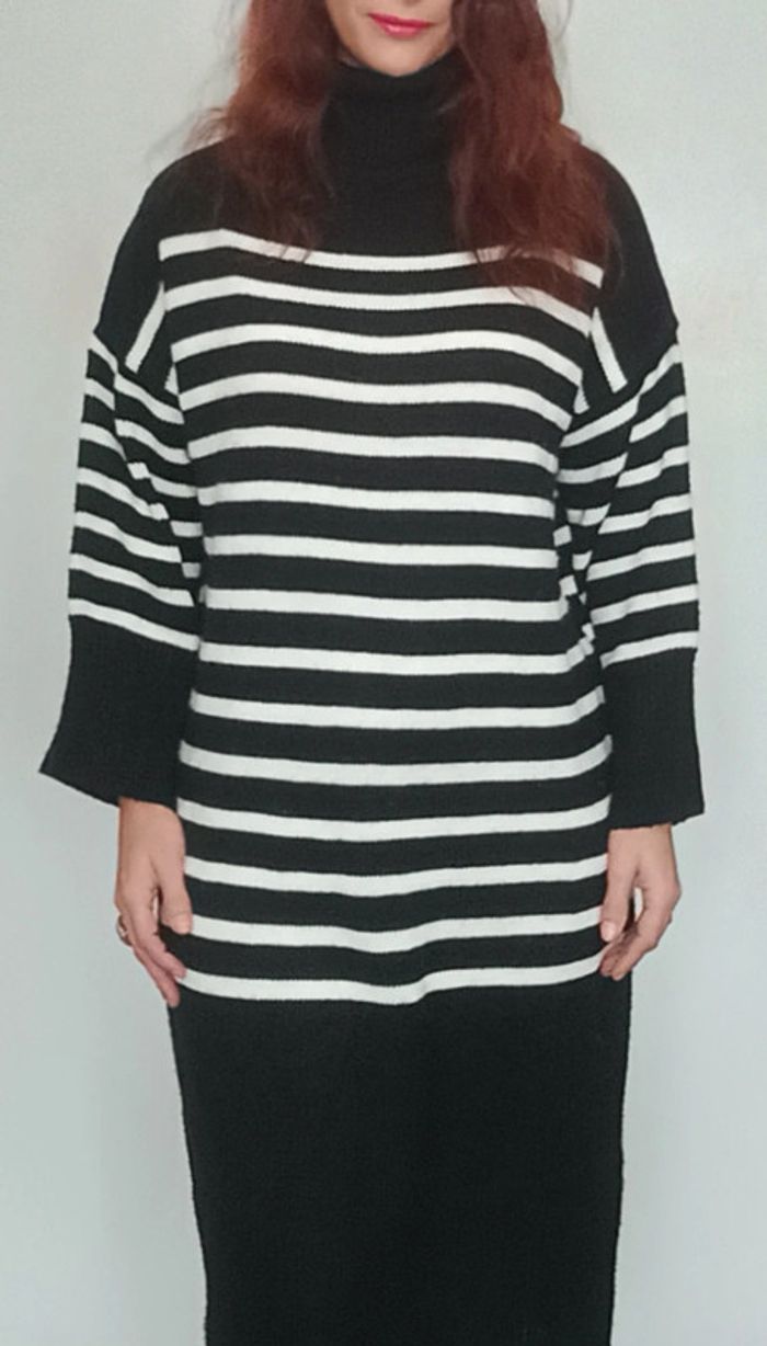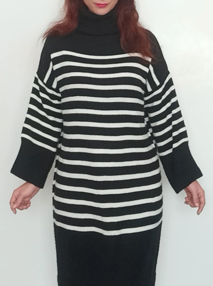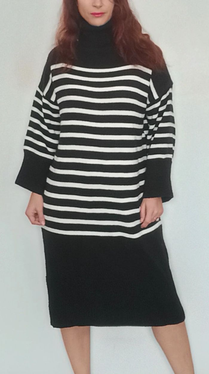 Regardez mes autres articles dans cette taille pour grouper les fdp #poupoupidou44 #poupoupidou46 Robe pull col roulé très chaude et féminine, a porter loose ou a cintrer avec une jolie ceinture, rayée noire et blanche, longueur genoux chic, étiquette coupée mesures exactes sur demande #robepull44 #robepull4446 #robepull46 #robepullgrandetaille #robepullrayee #robehivergrandetaille #robehiver4446 #robehiver46 #robecasualchic44 #robecolroule44 #robecolroule46 #robechaude44 #robechaude46 #robe3xl #robepull3xl
