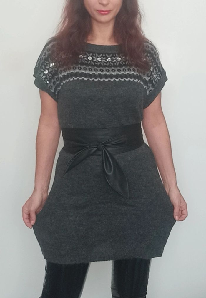 Robe pull hiver manches courtes grise taille 40 - photo numéro 9