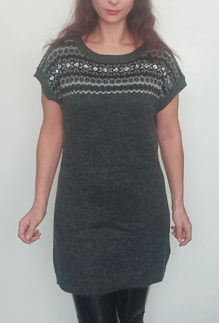 Robe pull hiver manches courtes grise taille 40 - photo numéro 1