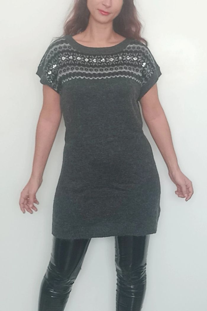 Robe pull hiver manches courtes grise taille 40