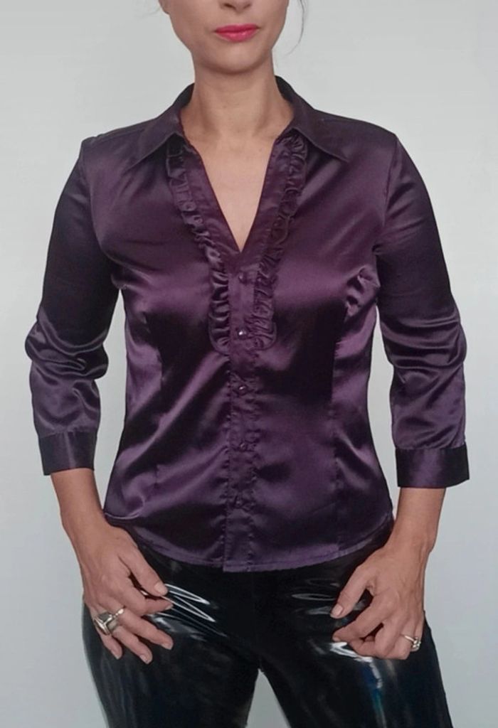 Regardez mes autres articles dans votre taille pour grouper les fdp #poupoupidou38 Chemisier satin uni violet , cintré, manches trois quarts, féminin, doux et chic, boutons assortis #chemisiersatin38 #chemisesatinee38 #chemisechic38 #chemisiersoiree38 #chemisiersatine38 #chemiseprune38