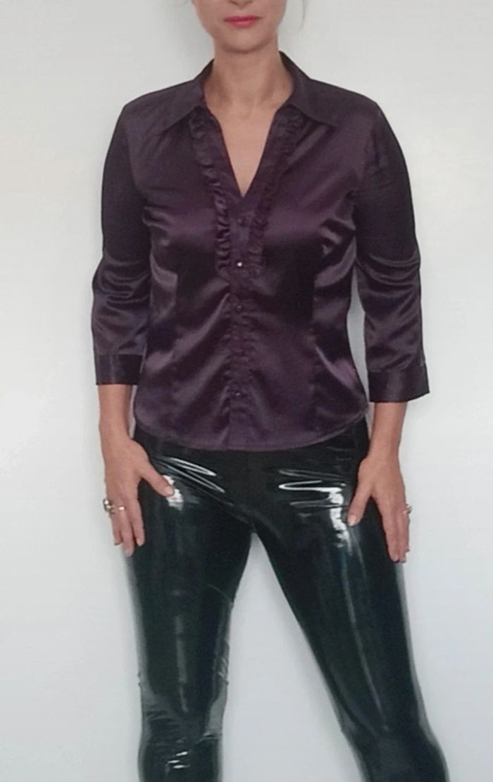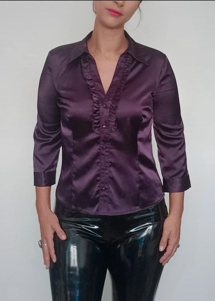 Chemise satinée ajustée prune taille 38 - photo numéro 1