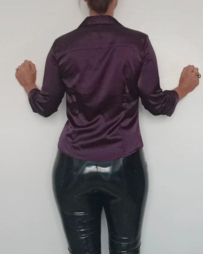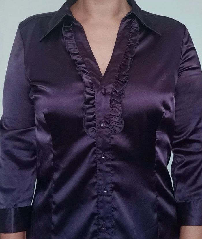 Chemise satinée ajustée prune taille 38 - photo numéro 3