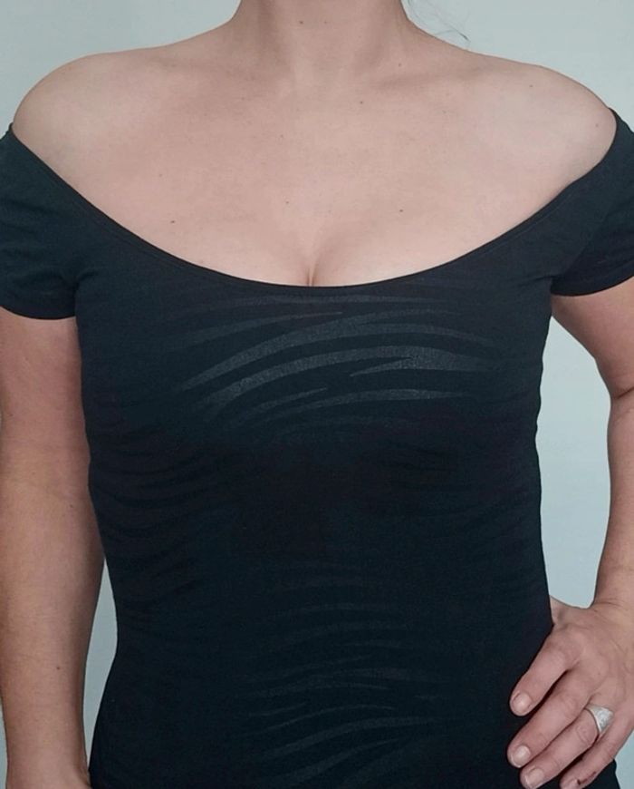 Regardez mes autres articles dans votre taille pour grouper les fdp #poupoupidou34 Robe moulante noire sexychic, épaules nues ou non, décolleté arrondi féminin, motif zebré ton sur ton idéale soirée en amoureux #petiterobenoire34 #robesexy34 #robemoulante34 #robesoiree34 #robesaintvalentin34 #robeepaulesnues34 #robedecolletee34