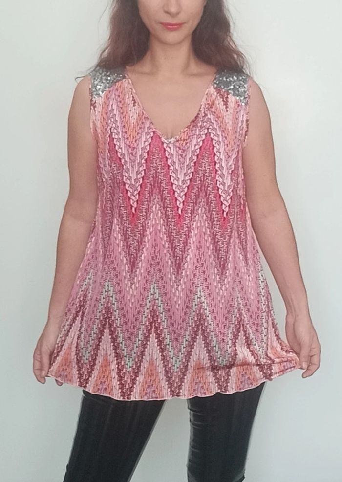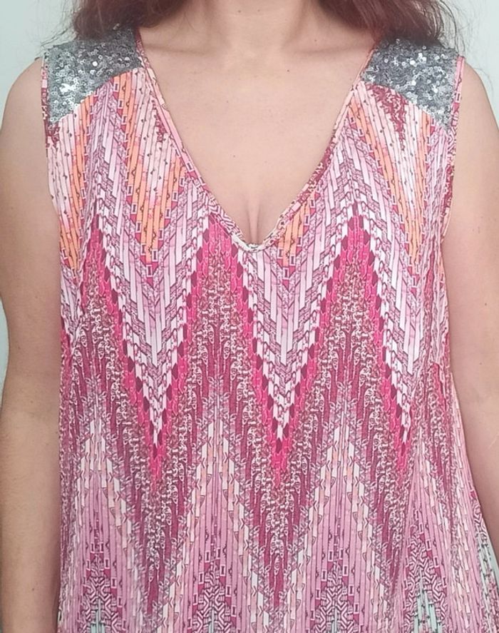 Regardez mes autres articles dans cette taille pour grouper les fdp #poupoupidou44 Tunique sans manches fluide très colorée, décolleté en V féminin, détail bretelles larges avec sequins argentés #tunique44 #tuniquecoloree44 #debardeurlong44 #tuniqueavecsequins #tuniqueazteque #tuniquechic44 #tuniquefetes44