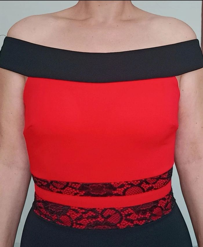 Regardez mes autres articles dans votre taille pour grouper les fdp #poupoupidoutu Robe courte moulante cintrée, rouge et noir, empiècements dentelle noir a la taille, épaules nues, idéale soirée ou événement comme saint Valentin #robesoiree #robechic #robemoulante #robeepaulesnues #robesexychic #robepinup #robesaintvalentin