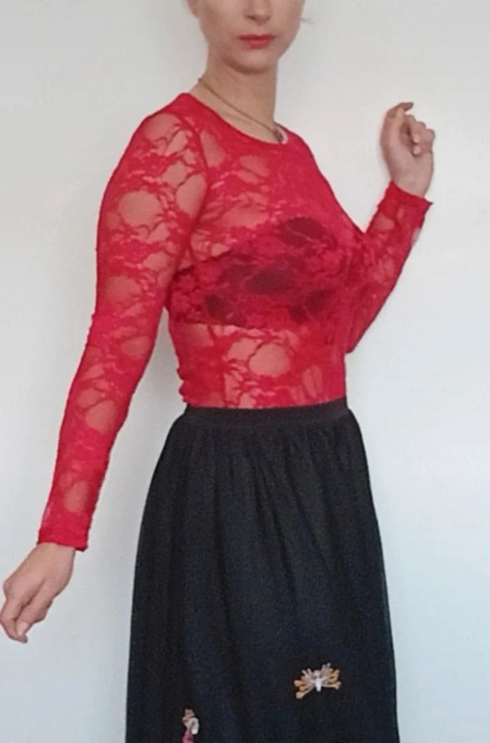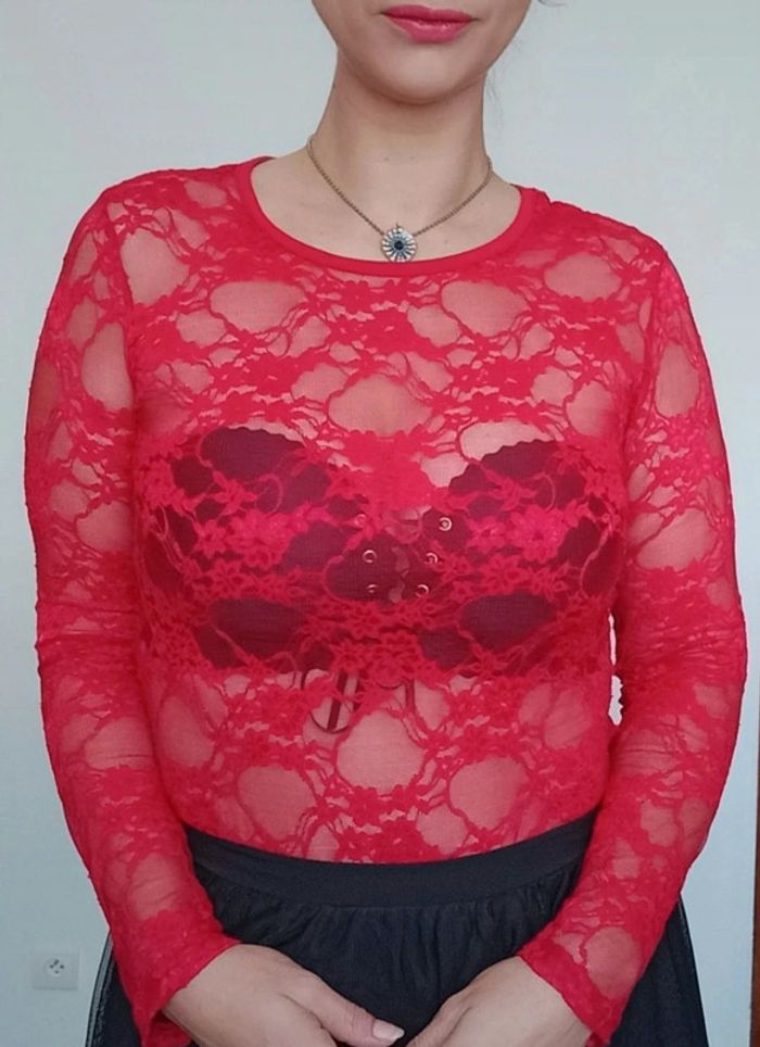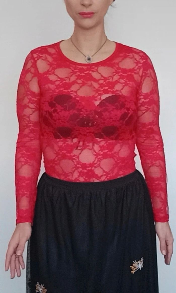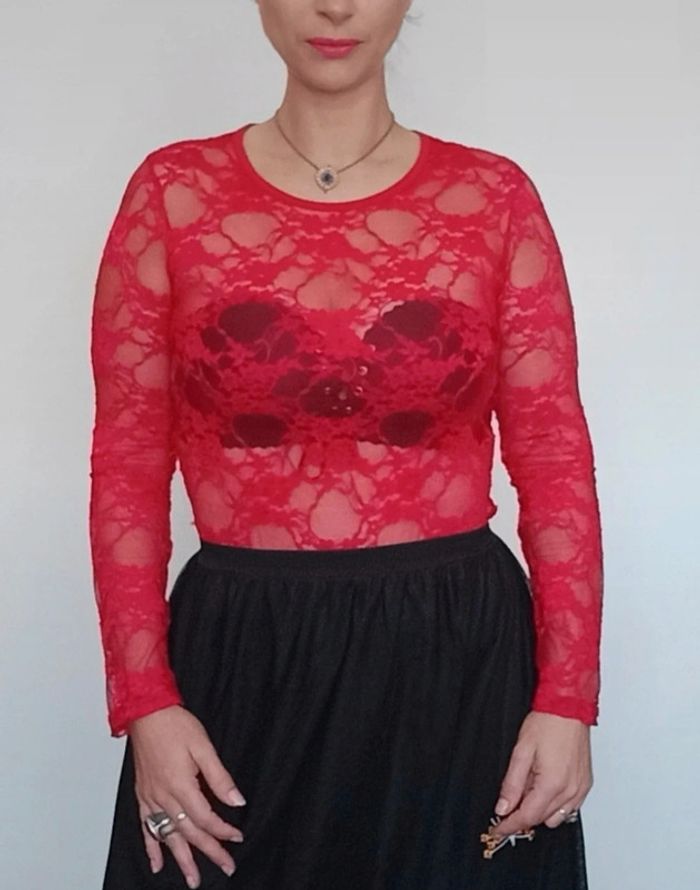 Haut dentelle rouge sexychic taille unique - photo numéro 1