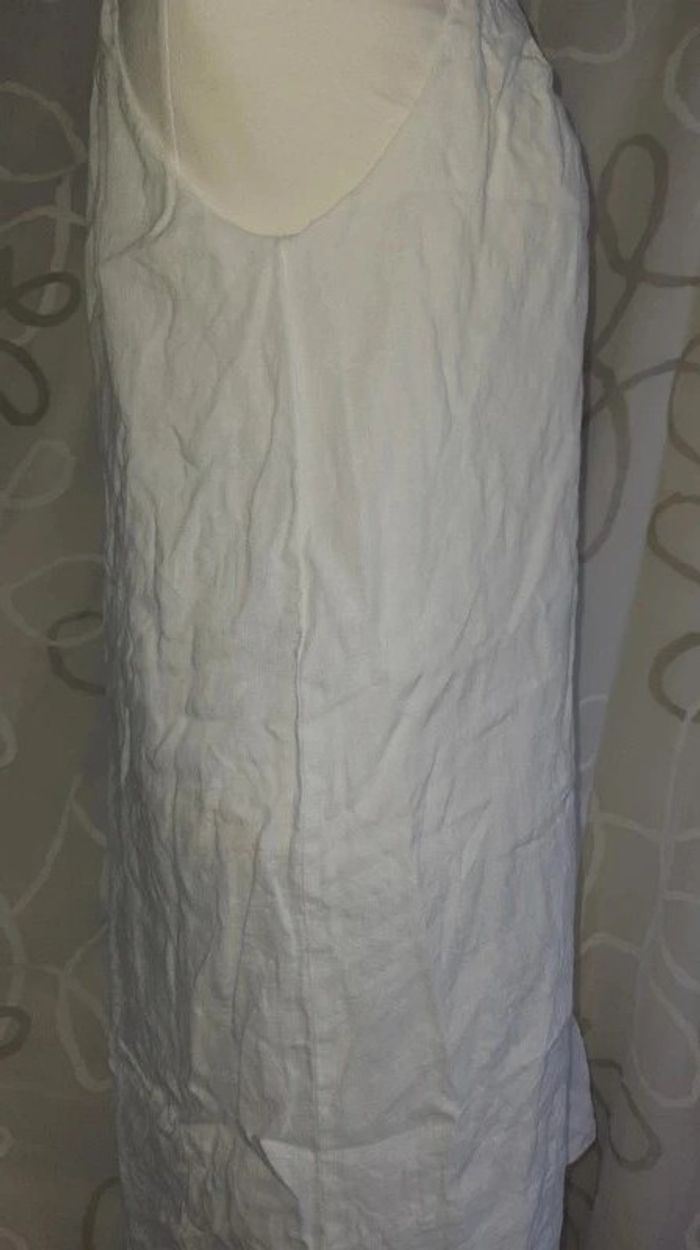 Marque: Jacqueline Riu Couleur blanche Doublée, non transparente, avec strass Longueur de la robe: 92cms Largeur poitrine: 50cms 100% lin, doublure en polyester Envoi rapide et soigné 👌 Remise de lot activée ❤️ #melu_femme38 #jacquelineriu #robeblanche