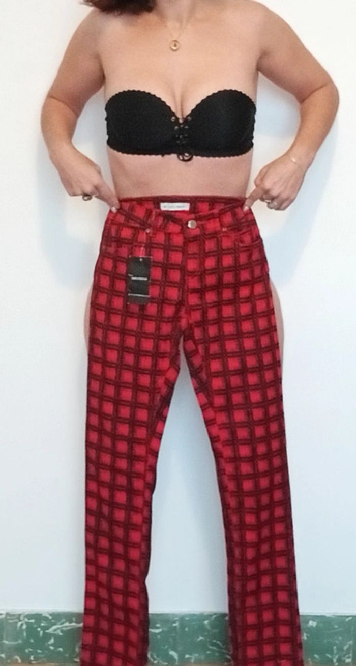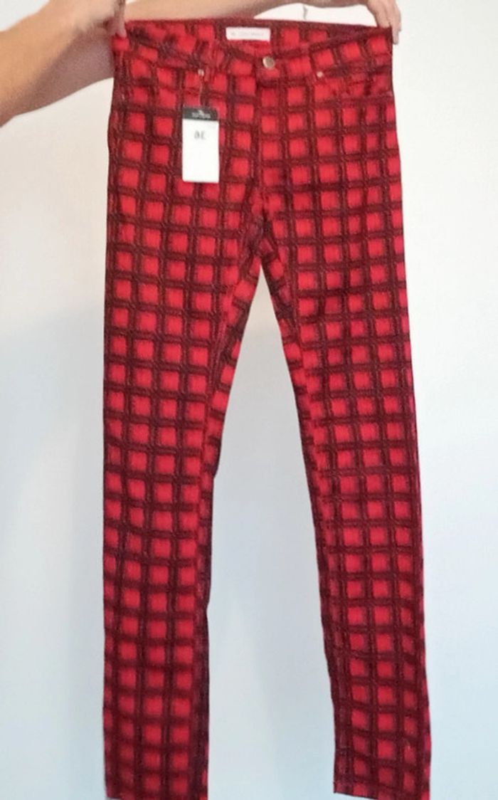 Pantalon ajusté à carreaux rouges et noirs neuf 36 - photo numéro 2