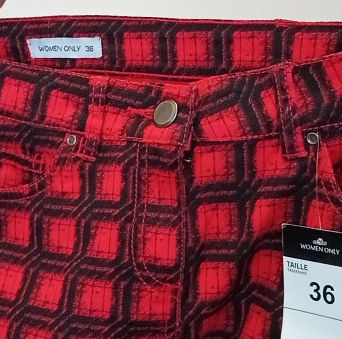 Pantalon ajusté à carreaux rouges et noirs neuf 36 - photo numéro 4