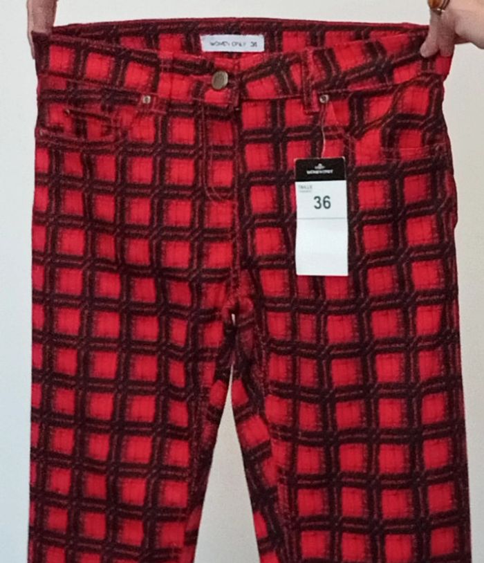 Pantalon ajusté à carreaux rouges et noirs neuf 36