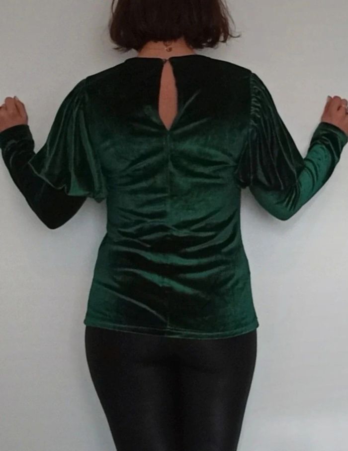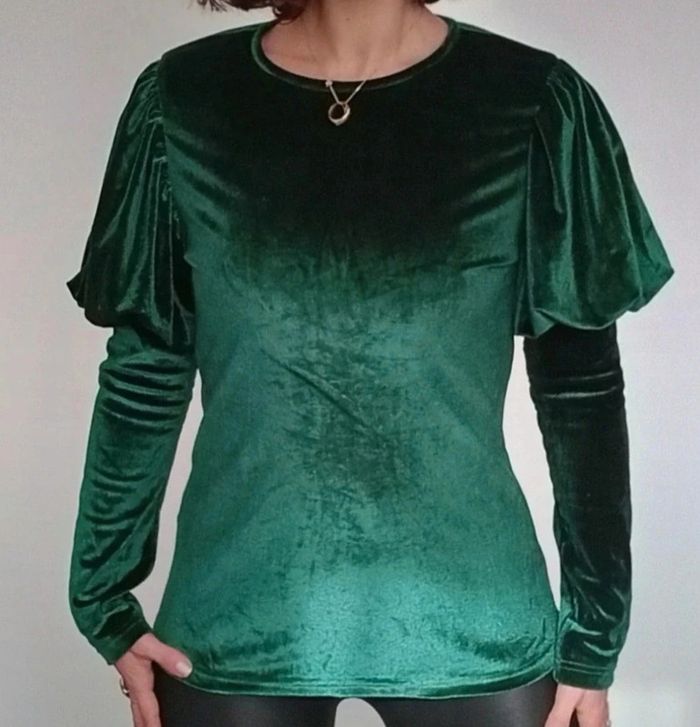 Haut velours vert manches ballons taille 38 - photo numéro 9