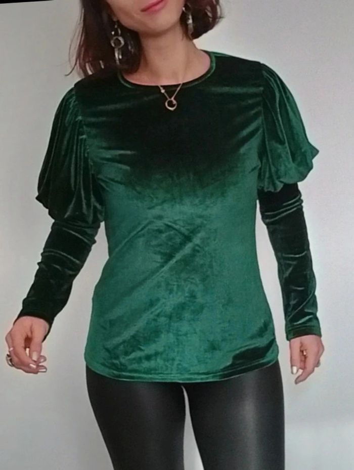 Haut velours vert manches ballons taille 38 - photo numéro 2