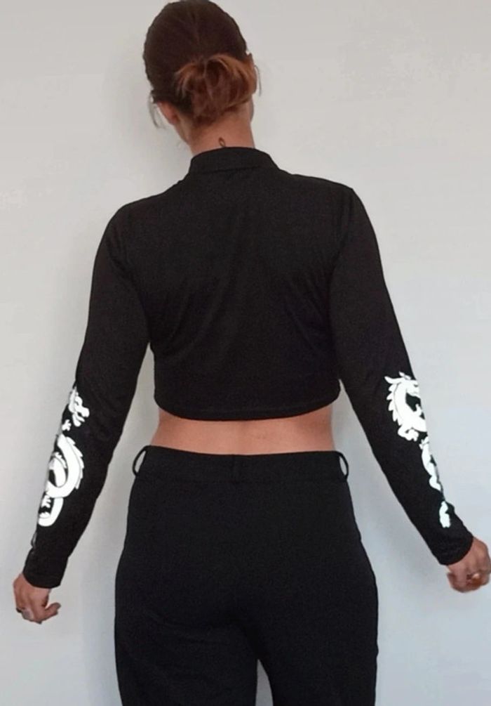 Regardez mes autres articles dans votre taille pour grouper les fdp #poupoupidou36 Haut tendance court, noir avec dragons blanc réfléchissants dur les manches longues, noir et blanc, facile a assortir, féminin #hautcourt36 #hautmancheslongues36 #hautdragons36 #dragon #hautcourtmancheslongues #hauttendance36