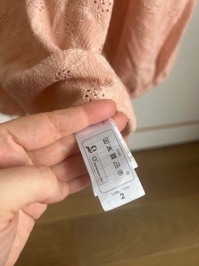 Haut rose en broderie Manches bouffantes Bréal taille 2