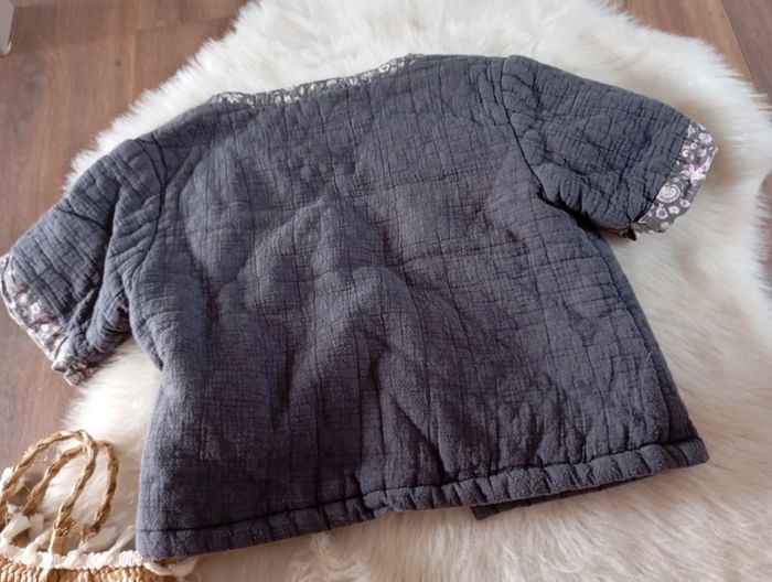 Petite veste assez courte avec des manches courtes à revers Apporter comme un gilet ou façon boléro au-dessus d'une robe par exemple pour une cérémonie un mariage baptême communion anniversaire ou même la rentrée scolaire au shooting photo de classe a l'école Gris unis et doublure façon Liberty fleuri N'hésitez pas à faire un lot si vous souhaitez bénéficier de la remise automatique #louusemisha #izianahuitans